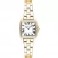 Dámské náramkové hodinky Napájení z baterie Průměr pouzdra 28,0 mm Pouzdro ve tvaru čtverce Ocelové pouzdro Zlatavá barva pouzdra Ocelový tah Zlatavá barva tahu Ručičkový ciferník Stříbrná barva ciferníku Materiál skla - minerální sklo Odolné proti vodě během plavání