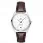 Pánské náramkové hodinky Napájení z baterie Průměr pouzdra 40,0 mm Pouzdro ve tvaru kruhu Ocelové pouzdro Stříbrná barva pouzdra Kožený tah Hnědá barva tahu Ručičkový ciferník Stříbrná barva ciferníku Materiál skla - minerální sklo Odolné proti vodě během plavání Datum