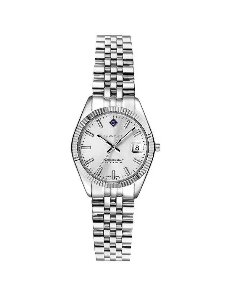 Decentní dámské náramkové hodinky Gant jsou navrženy tak, aby skvěle padly ženskému zápěstí. Hodinky jsou vyrobeny z vysoce kvalitní nerezové ocele. Kulaté pouzdro je vybaveno spolehlivým strojkem a baterií s dvouletou životností. Stříbrný číselník má k dispozici jednoduché ručičky a indexy hodin. Na pozici třetí hodiny najdete datum. Hodinky jsou vhodné pro každodenní nošení i do společnosti.