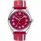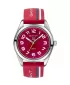 Dětské náramkové hodinky Napájení z baterie Strojek SEIKO Y121F Průměr pouzdra 32,0 mm Pouzdro ve tvaru kruhu Ocelové pouzdro Stříbrná barva pouzdra Červená barva tahu Ručičkový ciferník Červená barva ciferníku Ciferník s arabskými čísly Materiál skla - minerální sklo Odolné proti vodě během plavání