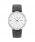 Krásné pánské hodinky v klasickém stylu si zamilují zejména muži, kteří touží po eleganci a jednoduchosti. Hodinky mají pouzdro vyrobené z oceli a disponují koženým páskem ve šedé barvě, díky kterému jsou hodinky pohodlné i po celodenním nošení. Ciferník hodinek v bílé barvě disponuje šedými indexy a ručičkami. Hodinky disponují sub-ciferníky zobrazující vteřiny a 24 hodinový formát času. Vodotěsnost tohoto modelu je pod označením 30M - umývaní rukou.